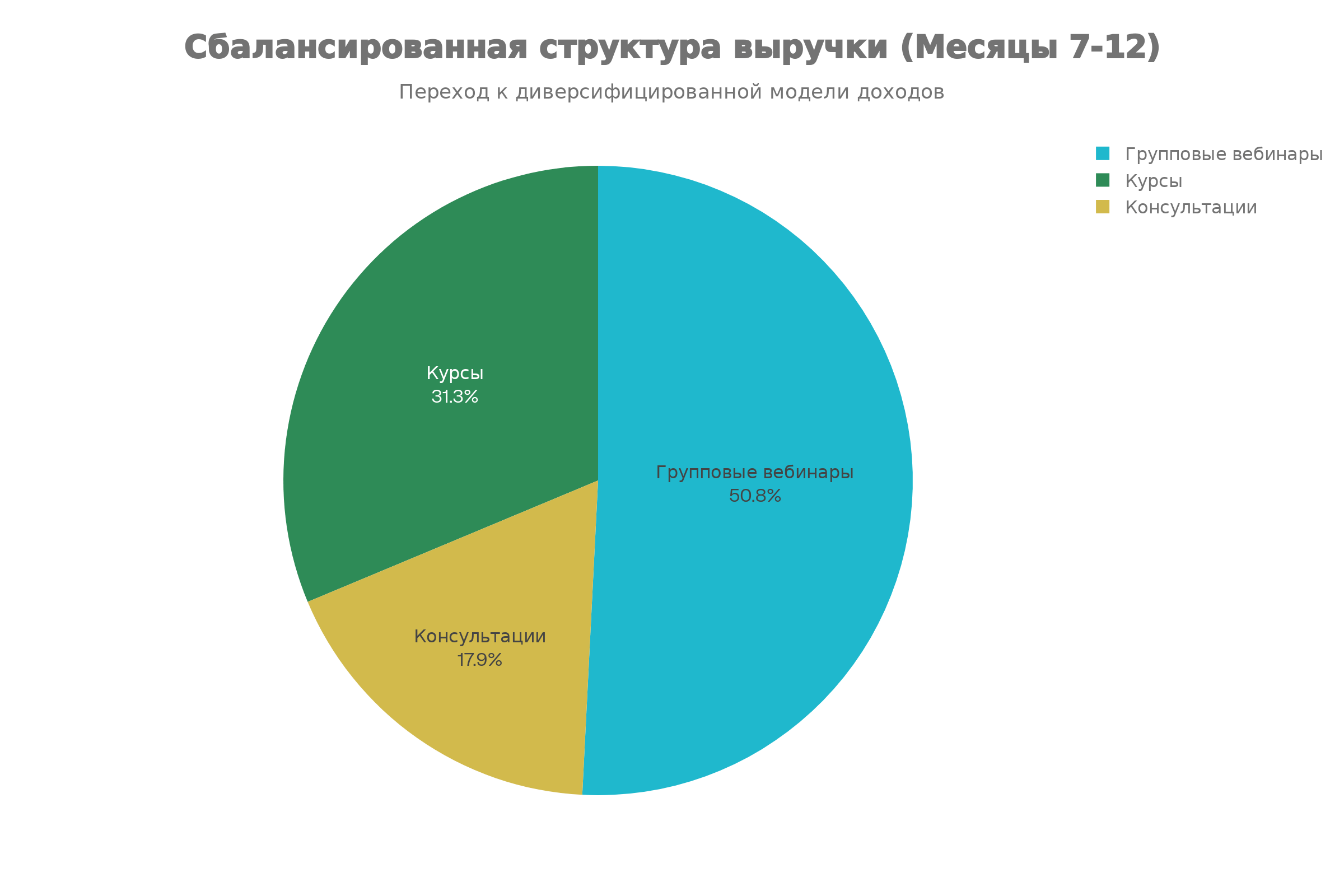 Месяцы 7–12: курсы становятся важнее (51% вебинары, 31% курсы, 18% консультации)