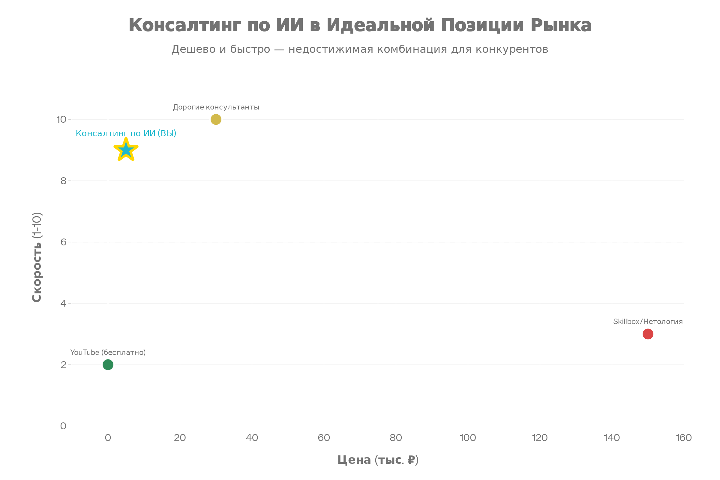 Матрица позиционирования: консалтинг по ИИ в идеальной позиции (дешево + быстро)