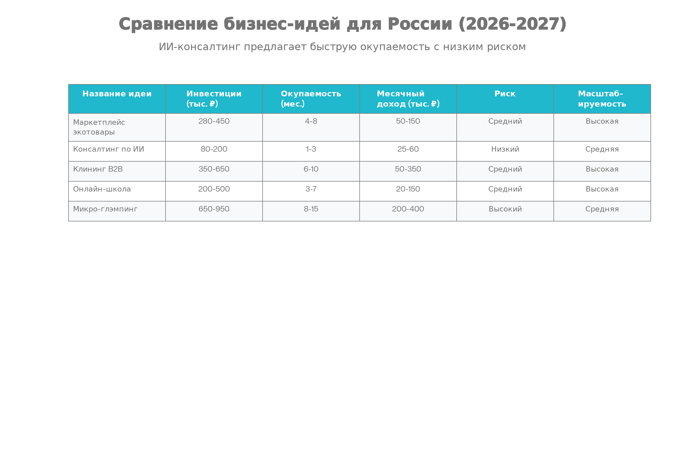 Предлагаемый бизнес — продажа экологичных товаров (биоразлагаемых диспоузеров и многоразовых авосек) на маркетплейсах Wildberries и Ozon. Стартовые инвестиции 280–450 тыс. рублей, окупаемость 4–5 месяцев, прогнозируемая чистая прибыль за первый год 1,6–1,9 млн рублей.