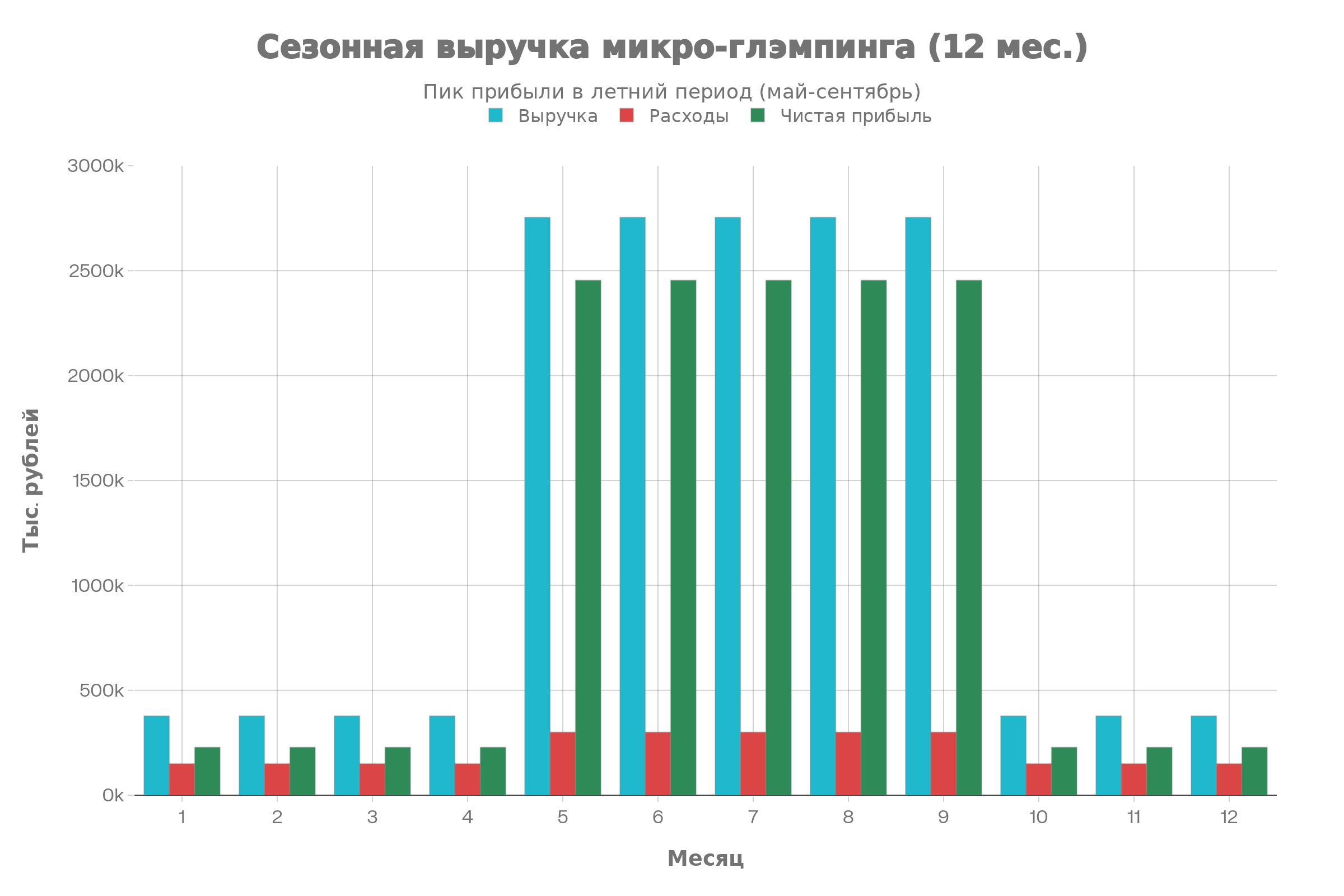 Вывод: Главный риск (сезонность) одновременно является главным преимуществом — летний пик даёт 80% годовой прибыли всего за 5 месяцев.